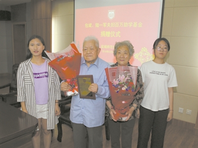 近日,93岁的包斌和他87岁的老伴陆一军将全部积蓄捐出,设立助学基金。