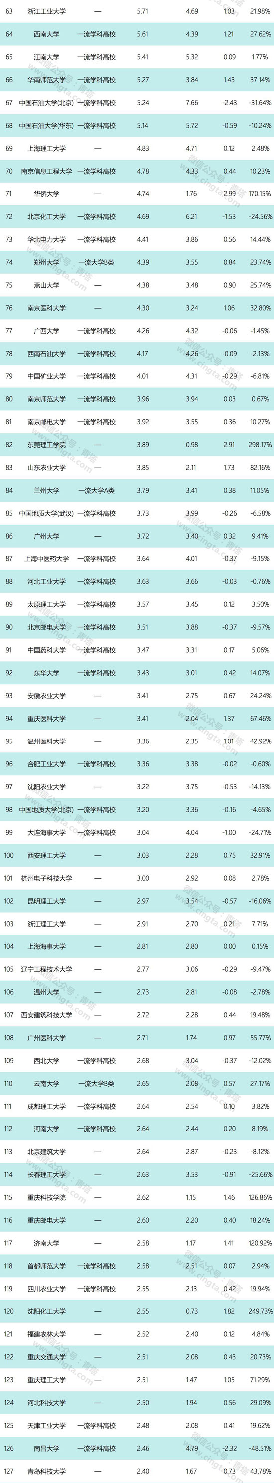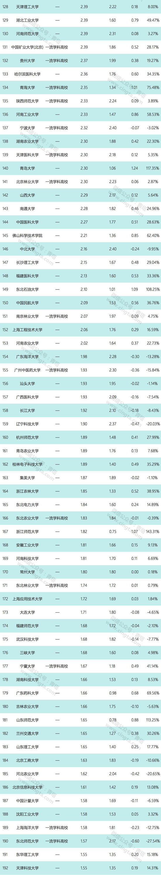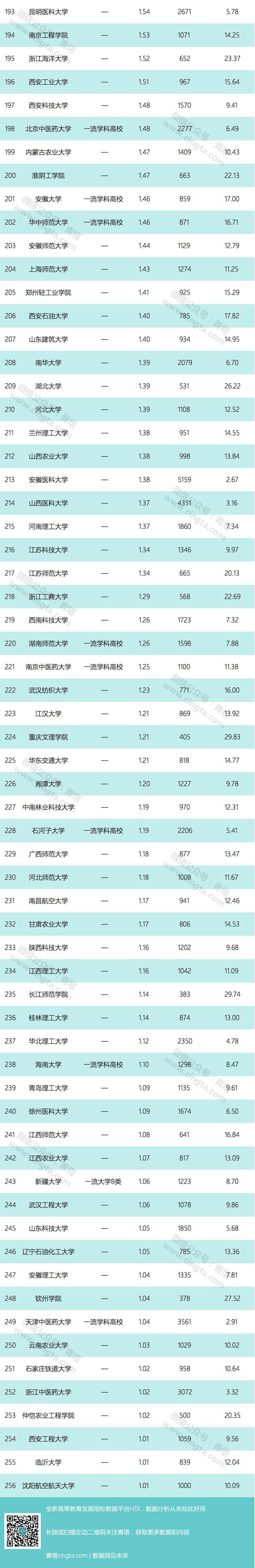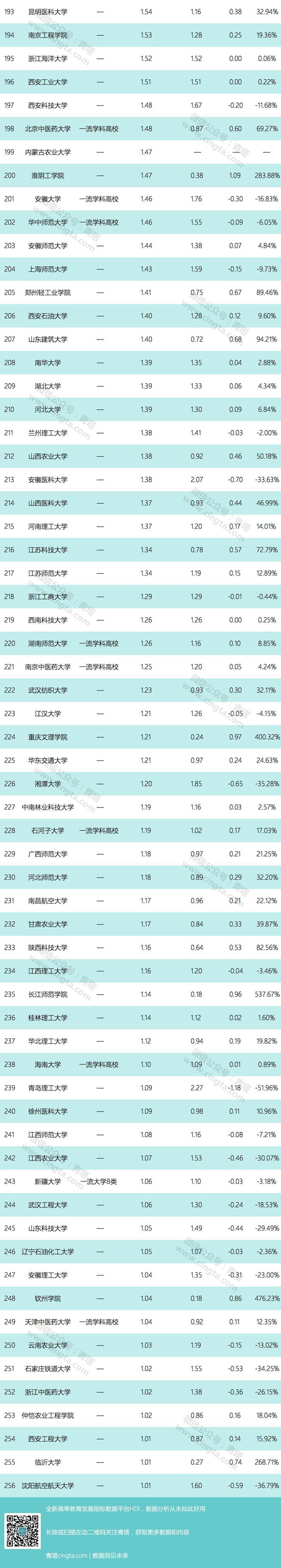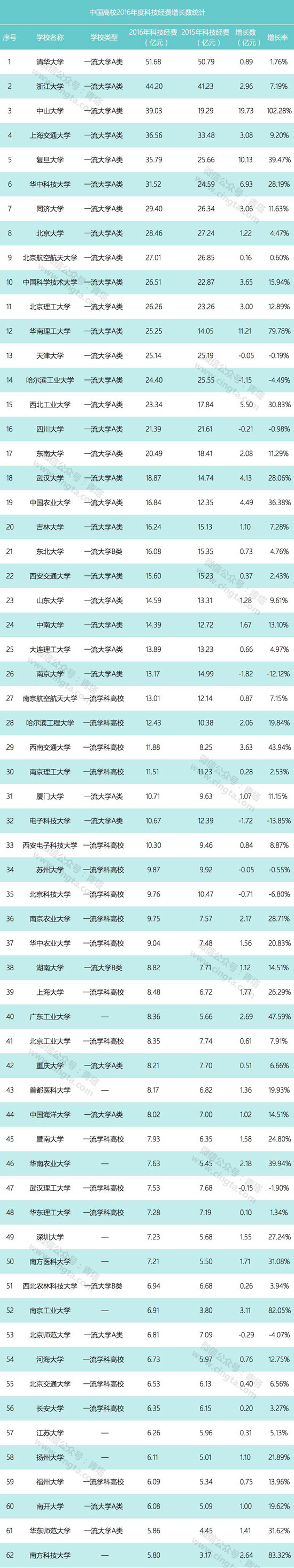 根据这份数据,青塔也对高校科技经费数据进行了独家的统计,整理出科技经费过亿的256所大学以及这些大学相比去年的增长数据, 供大家参考。
