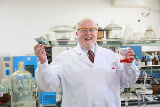 他叫David Evans,中文名字戴伟,今年60岁,是一位来自英国的化学家。视频里他总是戴着一副护目镜,穿一身白大褂,体态丰满,面带微笑,常被小朋友说成“肯德基爷爷”。