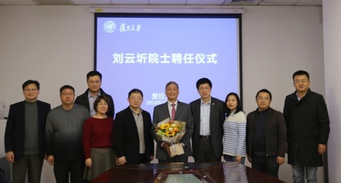 12月18日下午,中国科学院院士刘云圻聘任仪式在光华楼举行,复旦大学副校长徐雷为刘云圻颁发聘任证书。