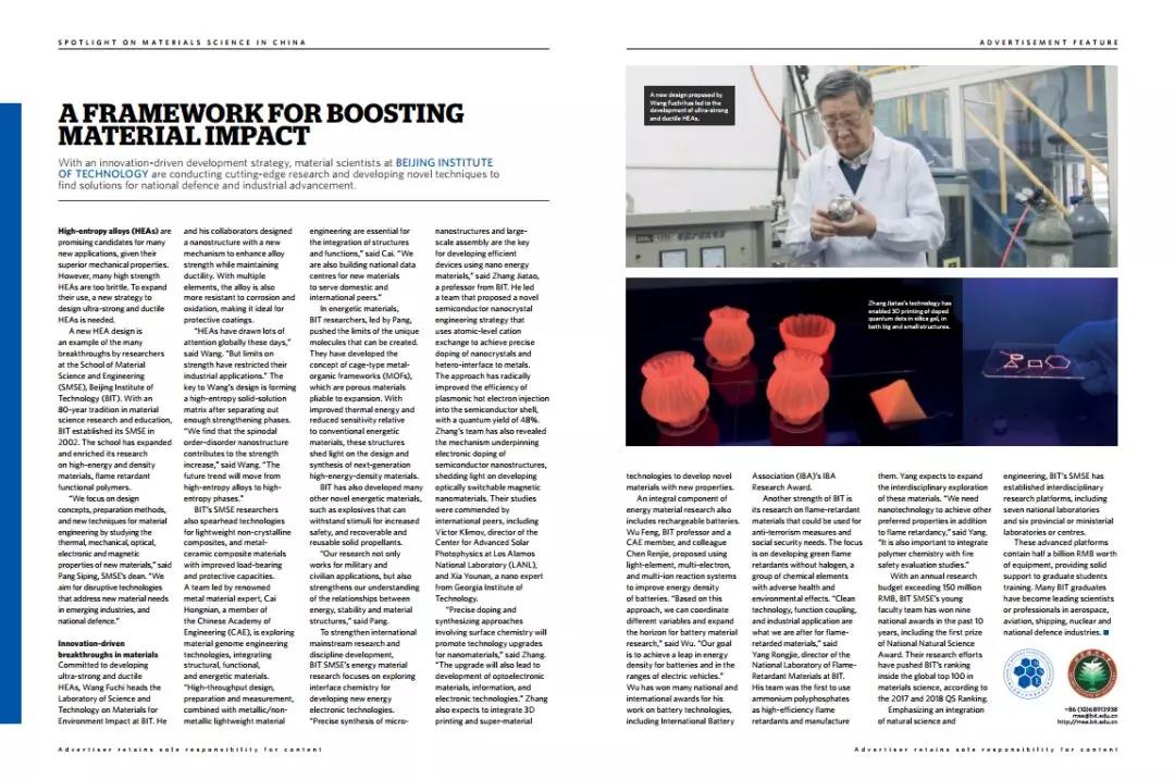3月21日,《Nature》在其Spotlight栏目报道了北京理工大学材料科学与工程学科,并对北理工在高熵合金为代表的毁伤与防护、含能、纳米新能源、二次电池、阻燃等领域的研究进展进行了介绍。