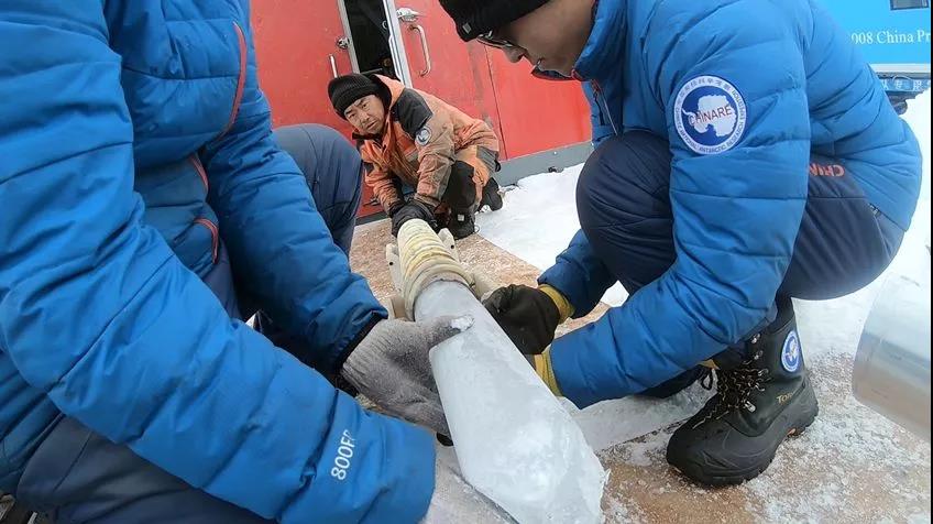 李星辰还告诉记者,由于一些不可控的因素,为了在短时间内完成任务,提高工作效率,队员们实行“两班倒”,分成白班和夜班在极寒条件下坚守岗位。“每天晚上都会刮很大的风,为了保证取出冰芯的质量,我们的钻探舱内不能有任何的保暖措施,在零下十几摄氏度甚至还有八、九级风的情况下,张楠老师一直操控着钻机,控制钻进过程,保证钻探顺利进行,12个小时不离开这个位置。钻探最后几天,他的脚已经肿的完全穿不进鞋了,但他还是凭着信念坚持到最后。”李星辰说。