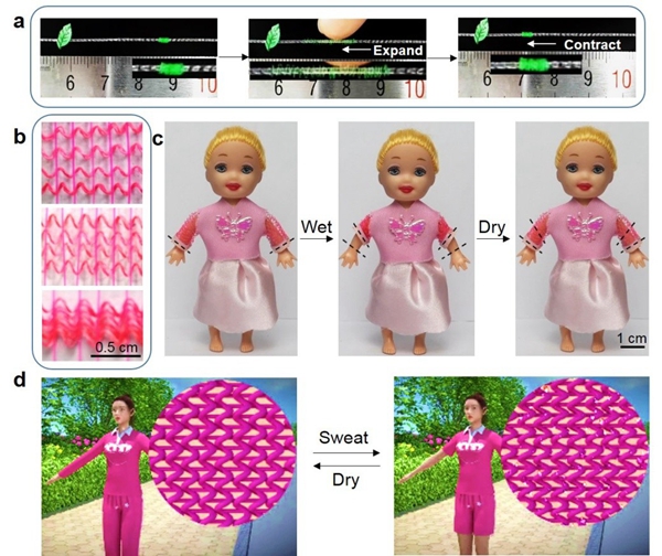如今,人们在智能纺织品的开发方面取得了不错的进展,制造出来的纺织品具有能量储存、自清洁、颜色变化、温度和湿度调节等新型功能。“如果纺织品能够对湿度响应,通过调节宏观形状或孔隙率实现水分和热量管理,将会为人们提供更多的舒适体验。这一设想,引起了我们极大的兴趣。”刘遵峰说。