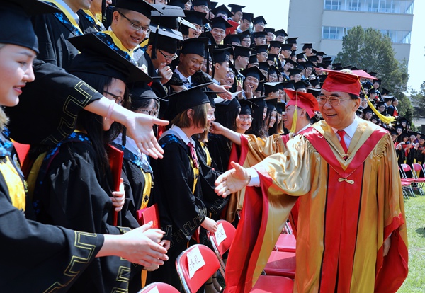 白春礼院士与毕业生亲切握手 (国科大 供图)