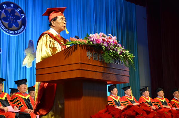 毕业典礼上,中国科学院院长、党组书记、中国科学院大学名誉校长白春礼院士在致辞中提出四点希望,希望同学们锤炼品德,提升精神修养;海纳百川,拓宽胸襟气量;敢于担当,胸怀爱国之情;珍惜友谊,互相鼓舞拼搏。他说:“虽然今天以后,你们可能要离开母校,但是请记住,母校依然和你们荣辱与共。”
