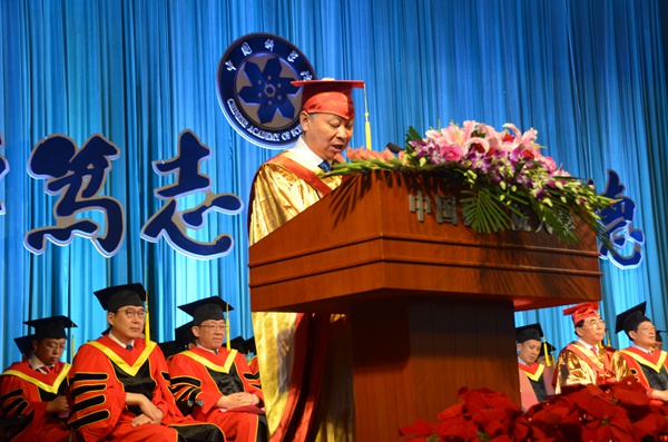 中国科学院副院长、党组成员、中国科学院大学党委书记、校长李树深院士提出要做四有“心”人,一是要有一颗好奇心,善于发现,追寻真理;二是要有一颗耐心,持之以恒,坚守梦想;三是要有一颗责任心,敢于担当,勇于创新;四是要有一颗平常心,立足当下,宁静致远。他勉励毕业生:“你们是中科院培养的‘科研特种兵’,是肩负着‘科技创新’使命的强国一代。希望你们把自己今后的奋斗目标,同祖国、同人民、同世界的命运紧密相联,为人类文明进步做出重大贡献。”