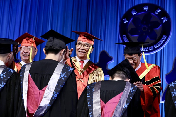 毕业典礼上,国科大表彰了2019届北京市优秀毕业生、2019届优秀本科毕业论文获奖者以及2019届优秀本科毕业论文指导教师。白春礼、李树深、李永舫等院士与许瑞明、孙凝晖、王笃金等教授,为同学们颁发毕业证书,并一一扶正流苏。