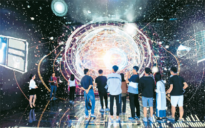 许多港台学生暑期选择去内地(大陆)走一走看一看。图为7月9日,来自台湾云林科技大学等5所高校的大学生走进安徽省淮南市,参观大数据展示中心。 新华社发(陈彬摄) |