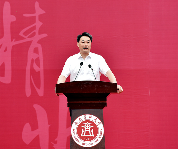 亲爱的同学们,人生是一场马拉松,需要坚定目标、奋斗拼搏、坚持不懈。你们正值青春芳华,宛如忠山上冉冉升起的红日,充满朝气和希望。学校正在奋力建设特色鲜明的西部高水平医科大学,让我们手牵手、肩并肩,用奋发有为的行动在西南医科大学这片热土上谱写出教与学的辉煌篇章!