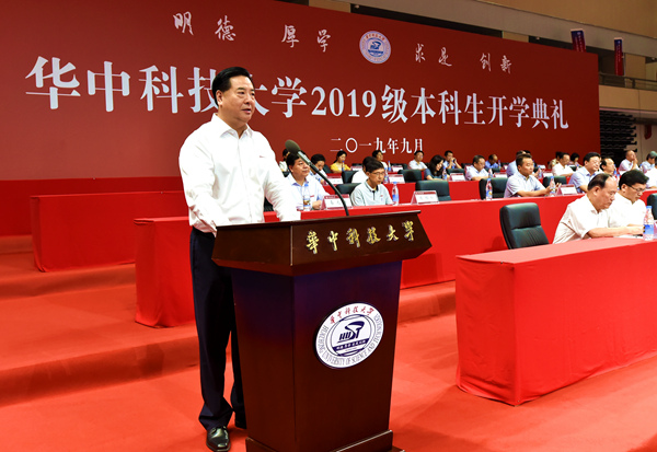 人民网北京9月4日电 华中科技大学3日举行2019级本科生开学典礼,校长李元元发言中寄语7154名新同学:追求卓越,要立鸿鹄之志、怀家国之情;追求卓越,要求科学之真、涵人文之美。