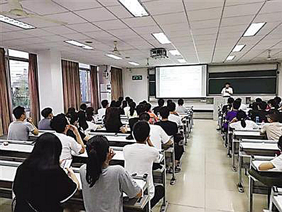这是该校通信信息工程学院张毅老师创新的上课方式。想上这门课的学生,需要提前半小时占座。