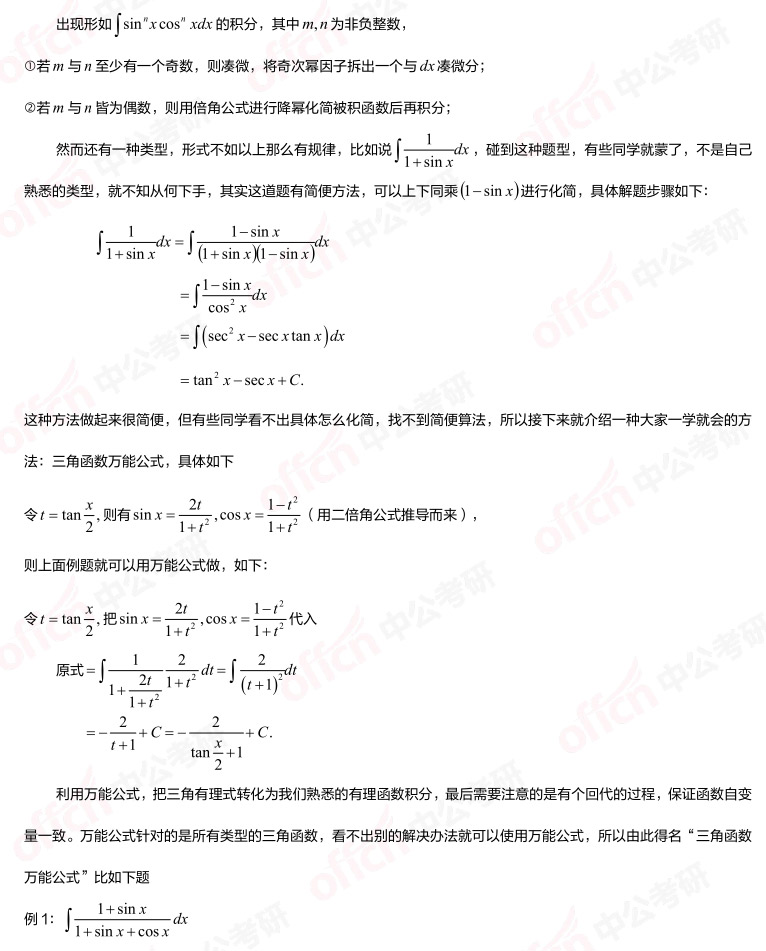 三角有理式的积分是计算积分最常见的题型之一,也是历年考研数学的一个常见考点。在大学阶段,同学们最喜欢找规律解题,接下来就介绍一下常规解法,知道解题思路,才可以科学有效地使用。