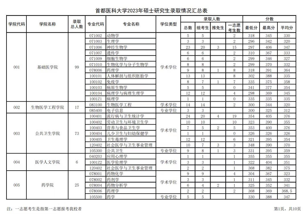 没有公布各专业报考人数,但从录取情况表来看,首都医科大学推免人数不是特别多;部分专业一志愿录取率很高,如生理学、免疫学等。由此可见,首都医科大学还是很保护一志愿的。