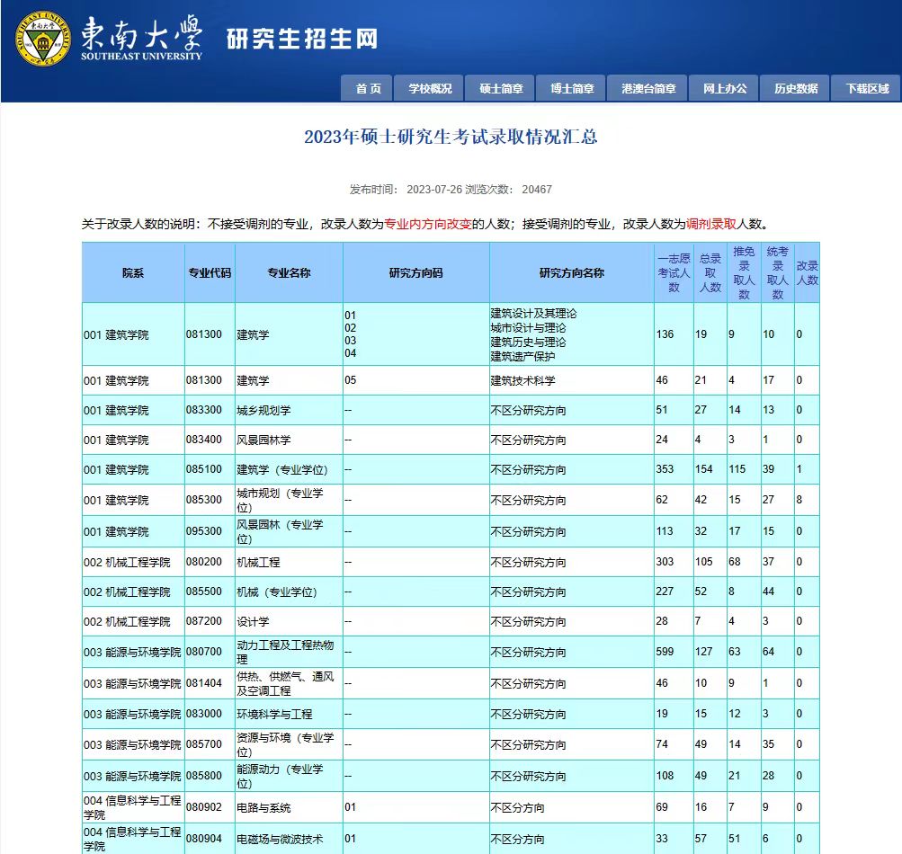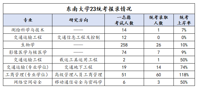 2023年共有2.3万人一志愿报考东南大学,统考录取人数4090人,调剂人数396人,一志愿统考报录比约为18%(不含调剂人数)。