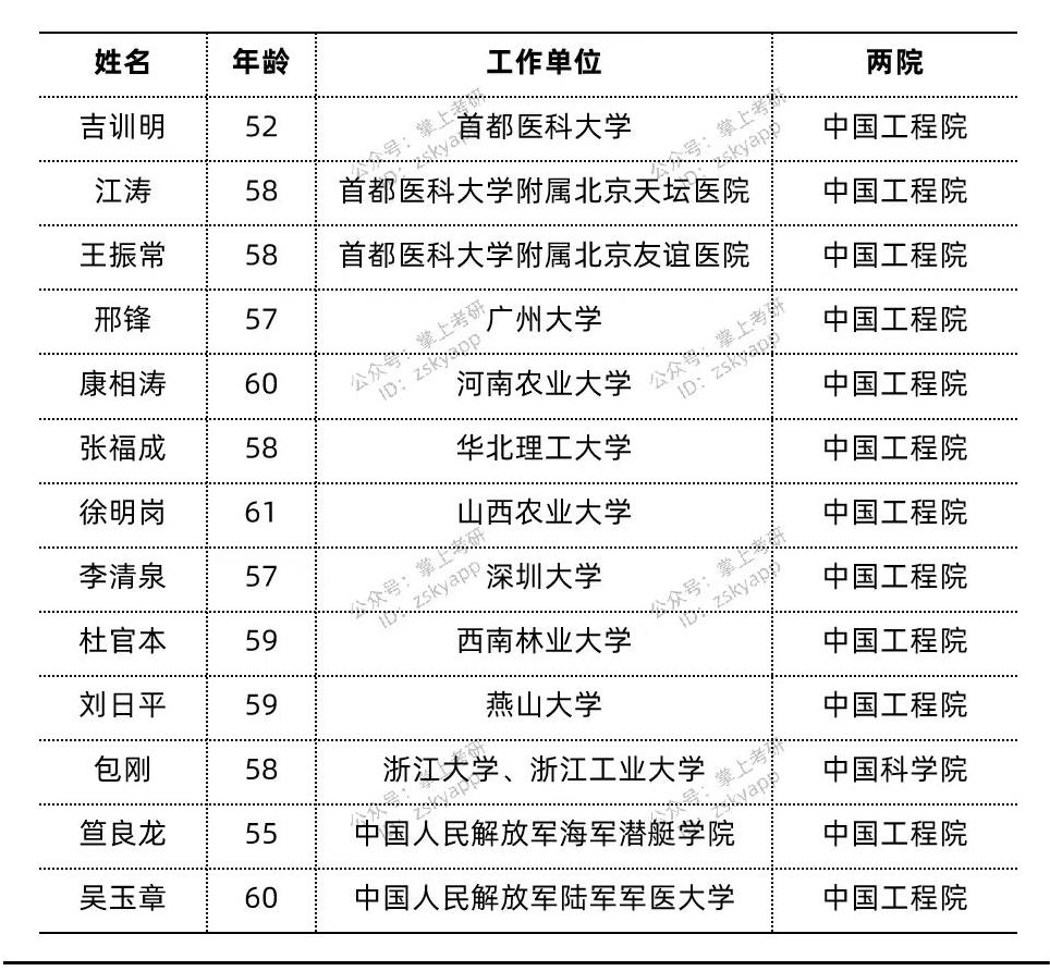 首都医科大学此次新晋3位两院院士。此外,广州大学、海军潜艇学院、河南农业大学、华北理工大学、陆军军医大学、山西农业大学、深圳大学、西南林业大学、燕山大学、浙江工业大学均有1位两院院士当选。