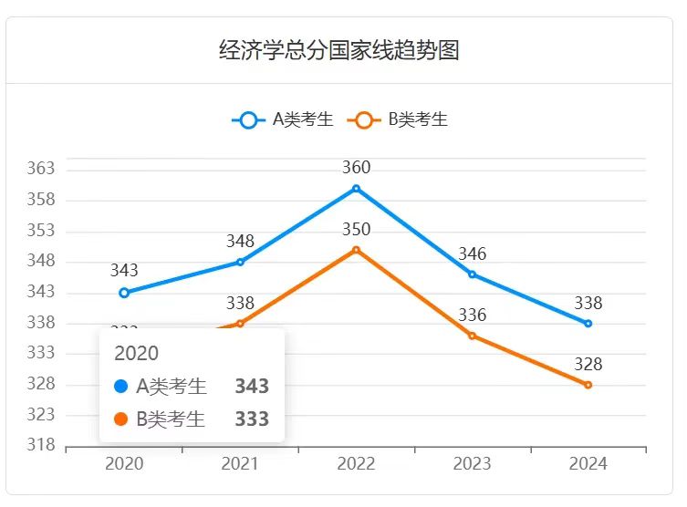 下面从分数线的角度去看一看考经济学类的专业大概需要考到多少分?