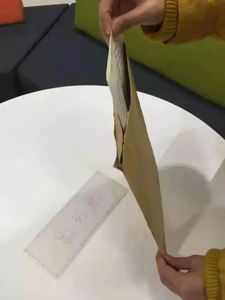 考研信封的特殊之处在于它有两个舌头,其中一个舌头向下折,藏进信封内部,在信封正面填写你的姓名、考试信息(要仔细填写)。