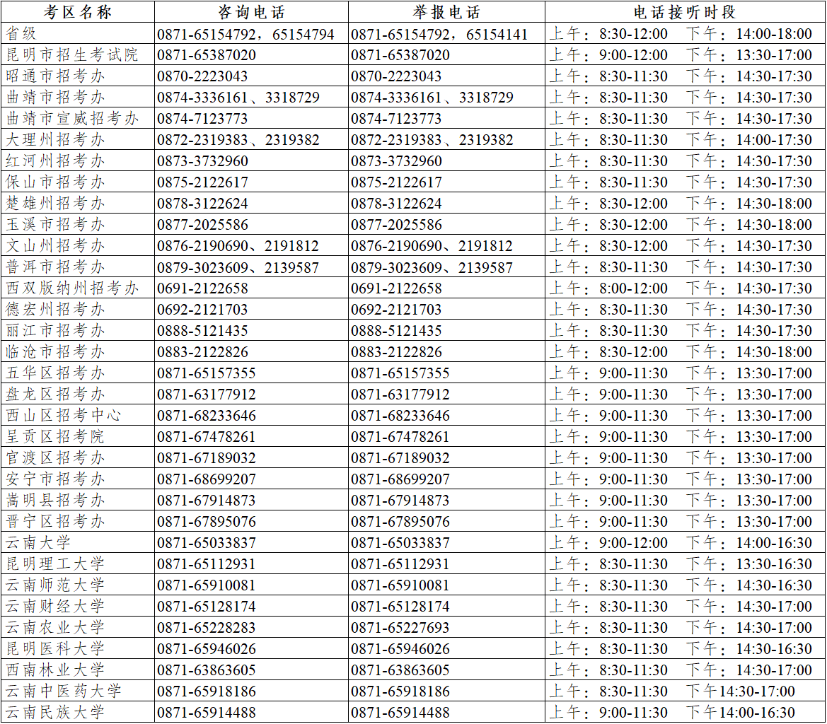云南省2025年硕士研究生招生考试咨询及举报联系方式(12月16-23日)
