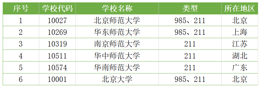 北京师范大学和华东师范大学的拟录取分数线可能不是最高的,但是综合各种因素来看,这两所学校的考研难度是最难的,当然,实力也是最强的。另外,南京师范大学、华中师范大学、华南师范大学和北京大学的难度也不小。