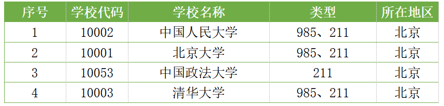 此前中国人民大学的拟录取最高分居然达到了415分,最低分也有370分,平均分为391分,可想而知,难度是有多大。而北京大学、中国政法大学和清华大学的平均分也在390分左右,与中国人民大学差不多。