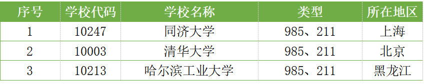 同济大学、清华大学和哈尔滨工业大学都是“建筑老八校”,而且都是“985”、“211”院校,校招资源优秀,社会认可度也更高,但是考研难度大,难以望其项背。