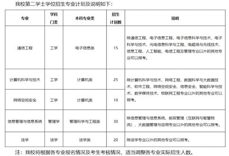 北京邮电大学2025年第二学士学位招生简章发布了。通信工程、计算机科学与技术、网络空间安全、信息管理与信息系统、法学有招。