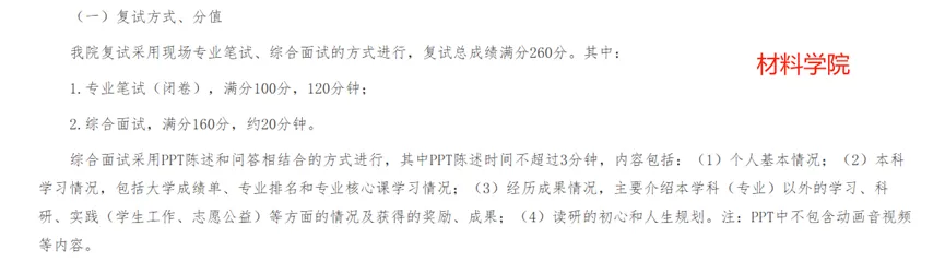 例如材料学院笔试100分,面试160分,需要进行PPT展示;而信息科学与工程学院笔试80分,面试180分,只需进行自我介绍和问答。