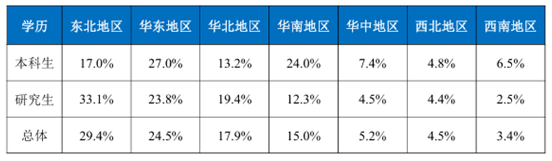 就业地区分布广泛,在北方地区认可度更高。