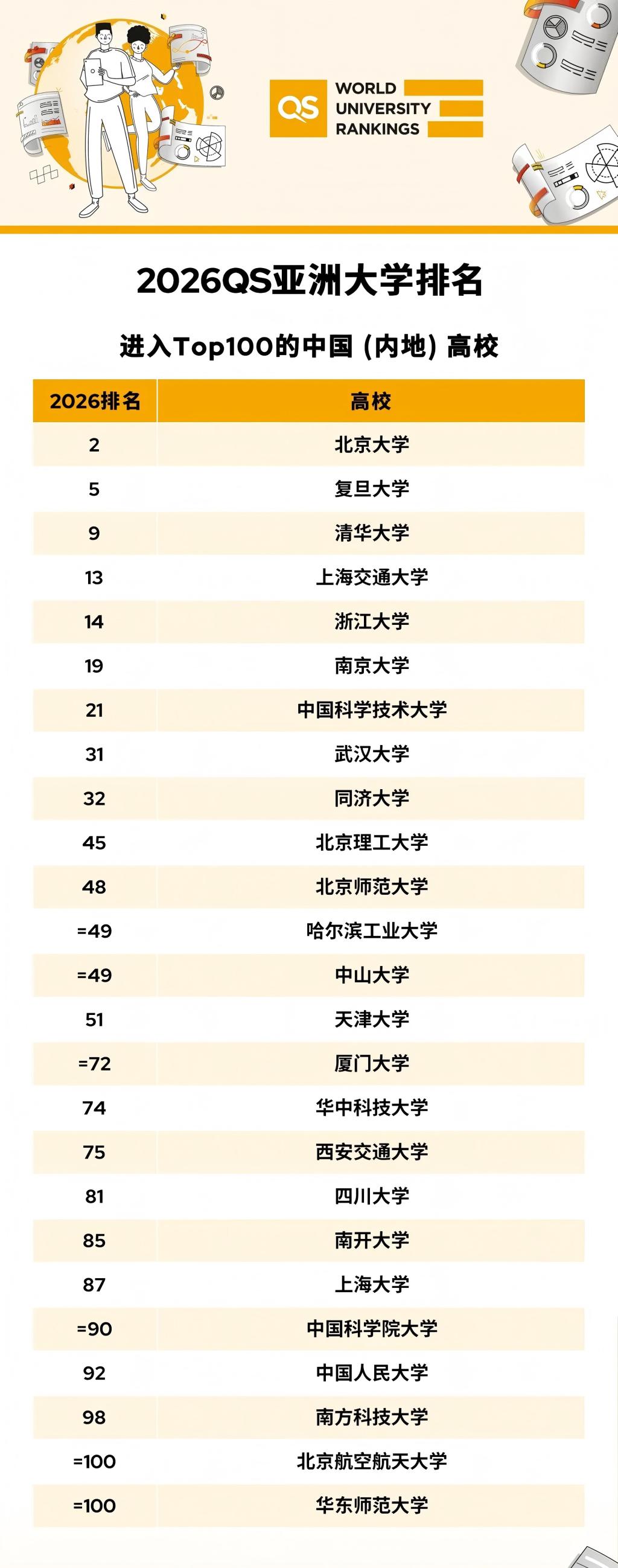 11月4日,QS发布了2026亚洲大学排行榜(QS University Rankings Asia 2026)。