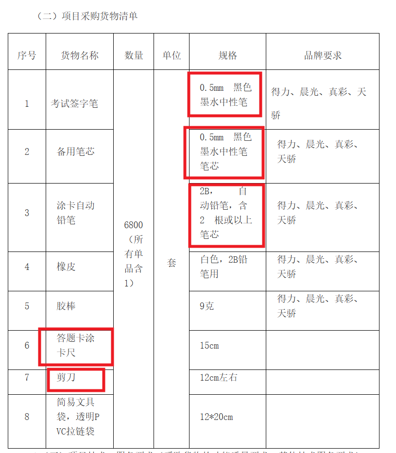 下图是四川师范大学考试文具采购清单,大家可以参考看看考场提供文具里面会有什么: