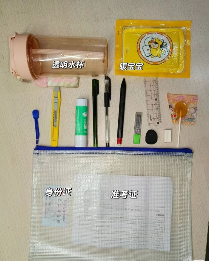 所有的文具都请在考前一天就准备妥当,准考证和身份证千万别忘带!