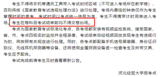 就怕有考点明文规定:“每科目考试结束前均不得交卷出场”。