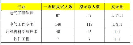 但也有些专业复试线较高:机械工程专硕高出25分、通信工程专硕高出国家线70分。