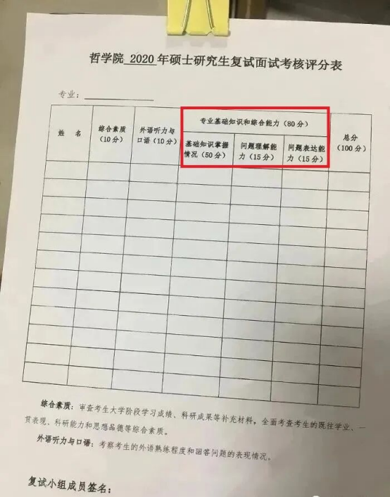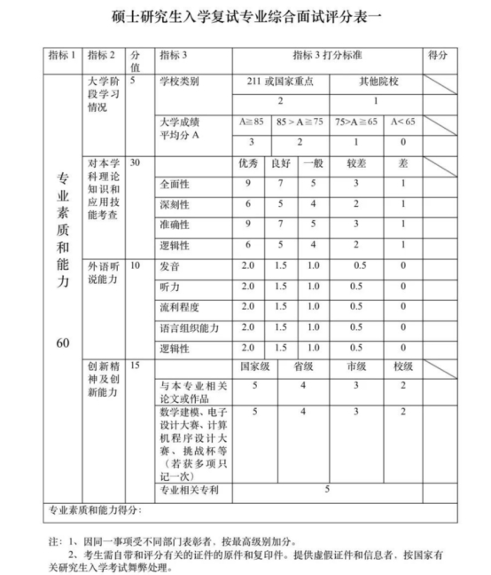 其实复试评分表相当于“考核说明书”,把对考生的所有要求都列得明明白白。