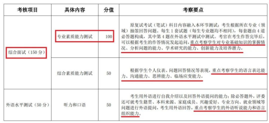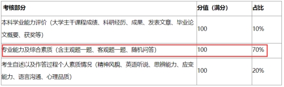 评分分为三大块:外语水平、专业知识及能力、培养潜力,专业课同样是抽签答题的形式。