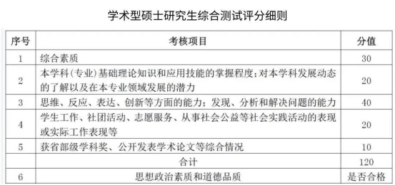 ② 综合测试(10分钟,120分)重点看思维反应速度、表达能力、创新意识这些综合素养,还有思想政治素质、道德品质等。导师常会问获奖经历、社团活动参与情况,以此判断你的综合素质。