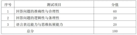 ③ 外语测试(5分钟,20分)主要考英语听力和口语,评分有明确的三级标准,具体可以参考下面的细则: