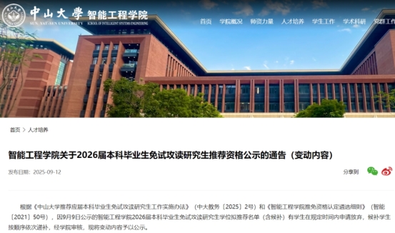 智能工程学院2名学生放弃推免资格。