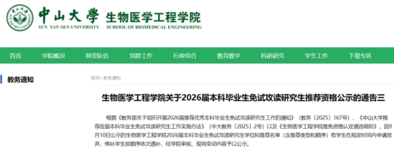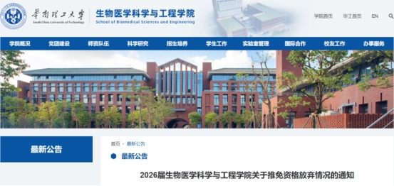 生物医学工程学院1名学生放弃推免资格。