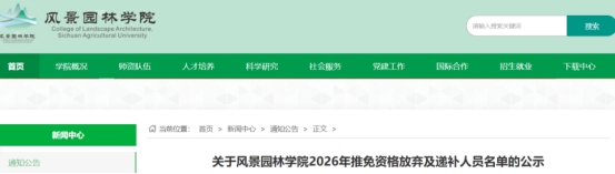 风景园林学院1名同学(园林专业)放弃推免资格。