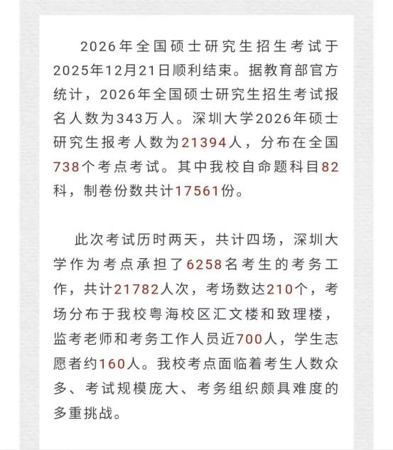 今年共有21394人报考深圳大学硕士研究生。