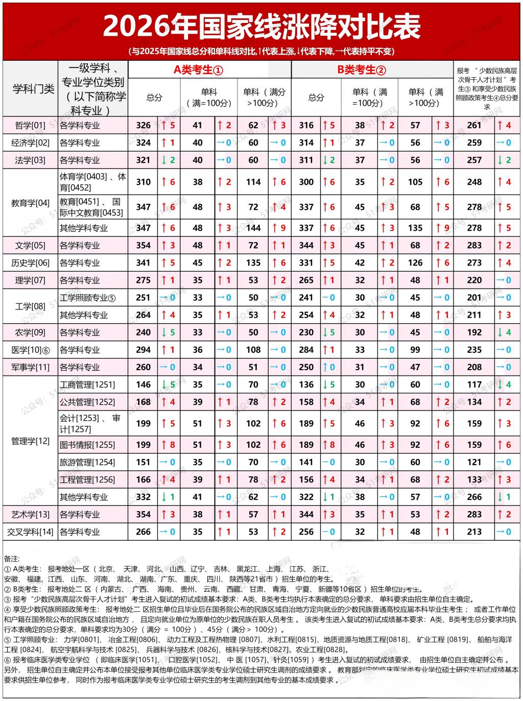 国家线涨了!26考研国家线变动对比与上一年国家线相比,今年国家线较多学科小幅上涨:
