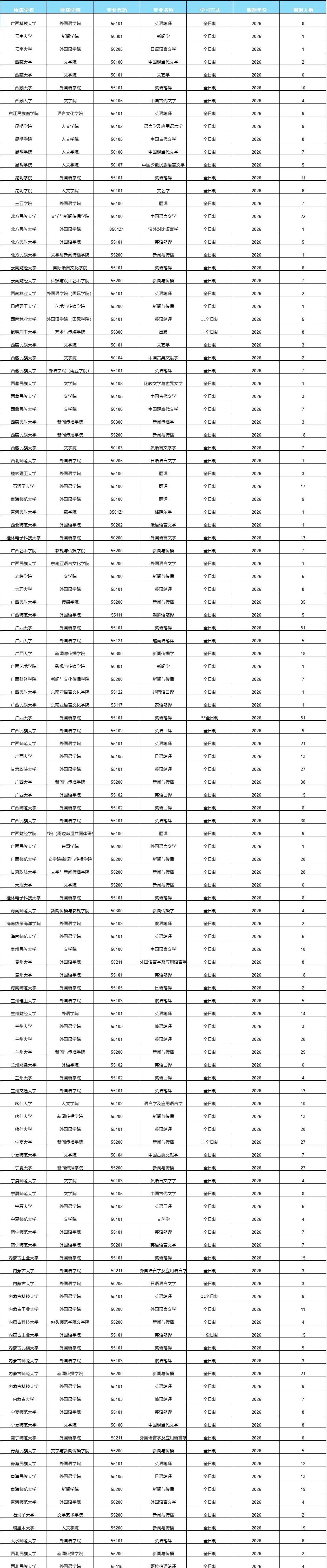 还有一个是中国语言文学下面的细分方向。文艺学、中国古典文献学、比较文学与世界文学这些,在一志愿报考的时候可能没人愿意报,但调剂的时候往往有名额。如果你不介意研究方向,可以多留意这些。下面看看2026考研部分院校以上专业的调剂表: