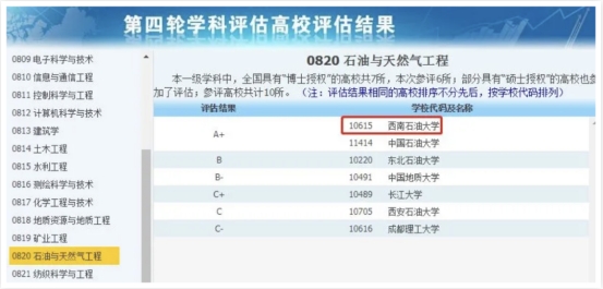 西南石油大学石油与天然气工程学科在全国第四轮学科评估中获得A+;2017年入选国家首轮“双一流”大学世界一流学科建设名单。