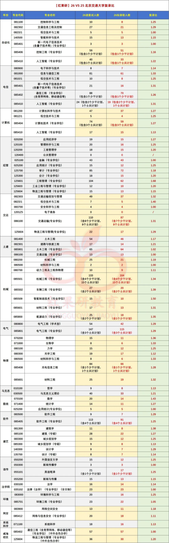 北交大是一所“偏科但不偏门”的学校——交通是老本行,但电信、计算机、电气、自动化这些新工科同样能打。如果你目标是京区工科211,不想去挤那些“卷破头”的学校,又希望复试相对公平、给机会大方,北交大值得你认真考虑。但记得避开那几个报录比破10的专业。