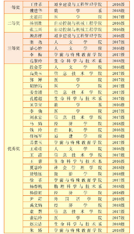 获奖同学名单如下: