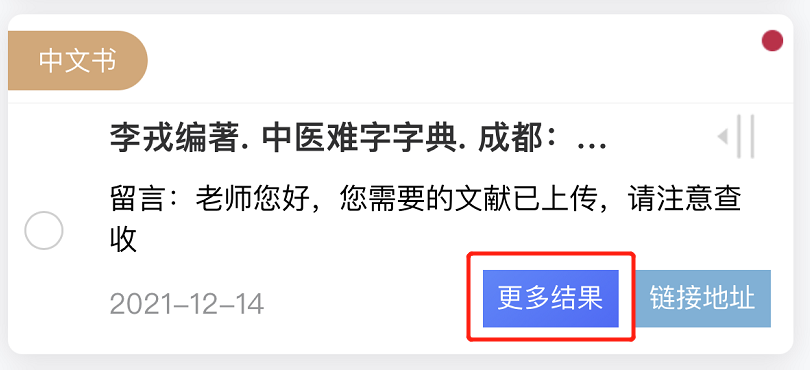 提供链接地址的文献需求可通过左滑对文献进行删除或反馈。